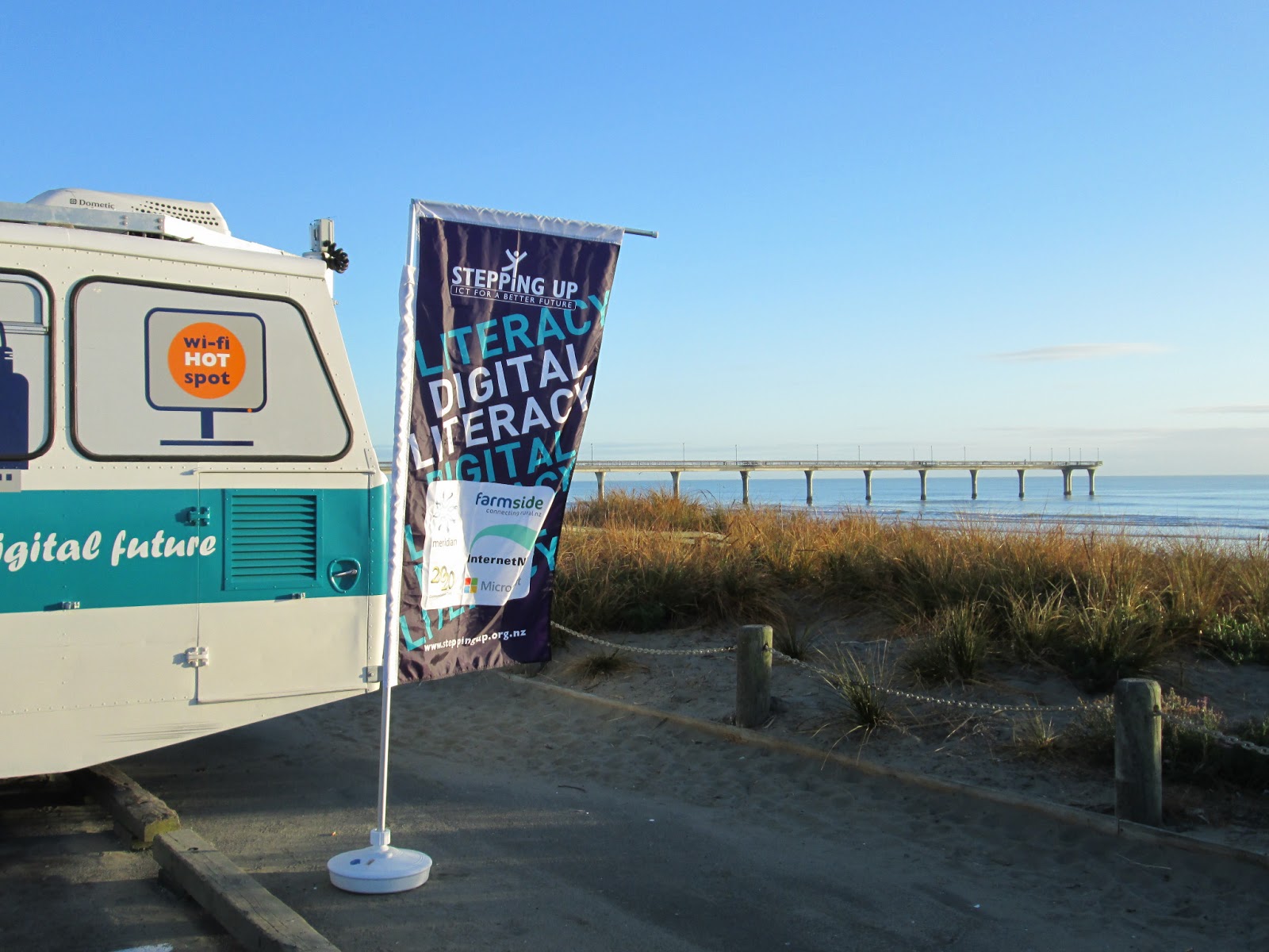 Today DORA parked up alongside the Christchurch City Council library van, in Sumner, to compliment their service. Our new volunteer, Gregg Scaife, was onboard to help with email and other enquiries. Just showing one lady how to zoom in was enough to make her day! (Ctrl+) Next week we will have our new volunteer driver helping out as well. Go Team DORA!